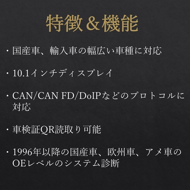 - OBDII規格に対応する国産車・輸入車等(アップデート機能有り)